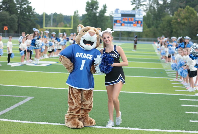 The purpose of the cheerleading team at Grace Community School is to promote school spirit, lead students, fans and athletes, continue traditions, and establish an enthusiastic atmosphere on campus and at athletic events. The cheer team includes a Varsity squad (students grades 9-12) and a Mascot. They cheer at football, volleyball, and basketball games, compete in the TAPPS State Championship each season and do multiple appearances and service events throughout the community.