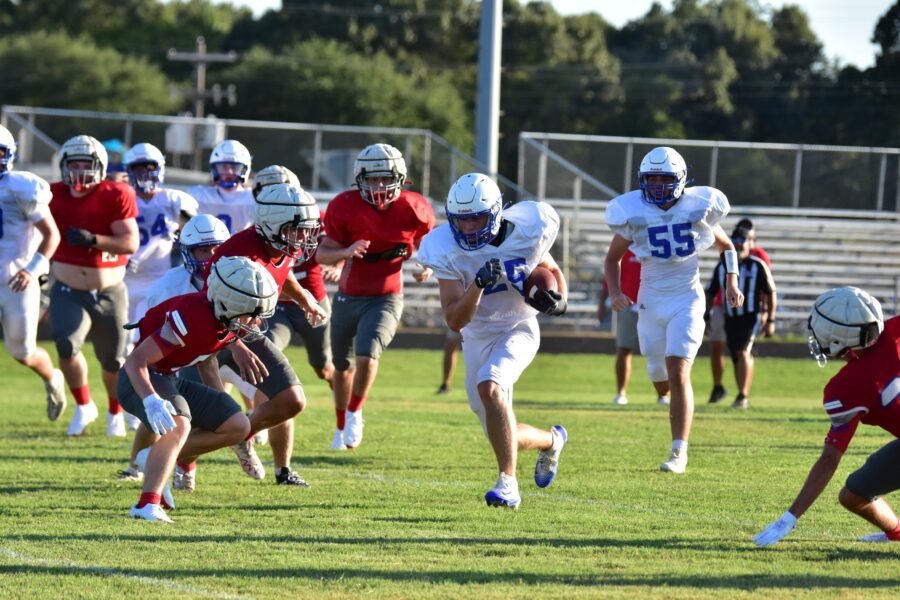 August 18, 2025 – The Grace Cougar football team continued their preseason preparation with a scrimmage last Friday night at Alba-Golden. Grace has a mix of returning starters and fresh faces, so it was good to get on the field and test themselves against some outside competition. Despite the heat, the Cougars played well and had some success against the Panthers. They will be back at work this week, continuing to grow and build a team to challenge all their opponents this season. The Cougars will have their second and final scrimmage this week. They will travel to Jefferson on Thursday night.