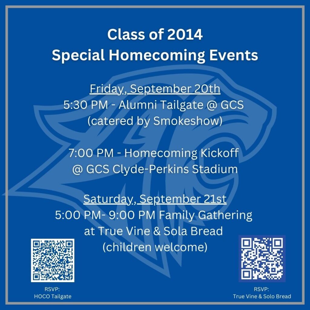 We are excited to have a GCS Alumni tailgate for all former students and alumni parents this year! Don’t miss this opportunity to see old friends, teachers, and coaches at Homecoming 2025! Please click here to RSVP BY OCTOBER 26th so we can ensure an accurate food count for everyone.