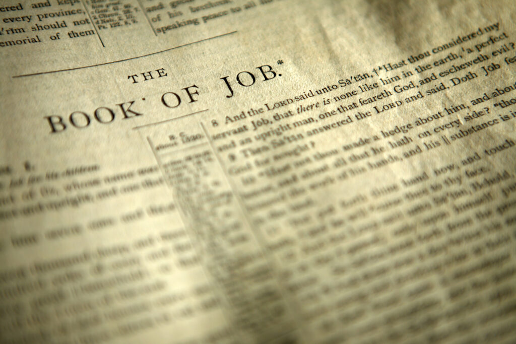 I read an article in Christianity Today years ago that noted that this passage doesn’t read the way we think it does in the original Hebrew. We often interpret this as Job exhibiting superhuman faith, suggesting that he will trust God regardless of what happens to him. According to the article, however, the original Hebrew actually translates the passage as Job angrily addressing his criticizing friends, saying, “Keep quiet; I will have my say. Let whatever may come upon me come. How long! I will take my flesh in my teeth; I will take my life in my hands. He may well slay me; I may have no hope; Yet I will argue my case before Him.”