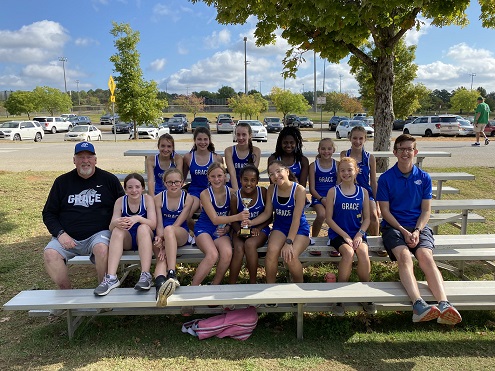 Our Grace JH Girls Cross Country team are the 2022 TAPSAC CHAMPIONS!! Our team was led by 8th grader Emma Goetz who finished first followed by 8th grader Addie Mathews in 2nd and 7th grader Casey Goetz in 4th.  Kora Rucker (7) and Audrey Kirby (7) were our other top 5 team finishers.  Rounding out our day in order: Sophia Gilmore (6); Olive Brookshire (7); Deborah Mercado (7); Hazel Finley (7); Zoe Coates (6); Adi Beverly (6); Juliet Montier (6) and Molly Cannon (7).  Great job girls!!