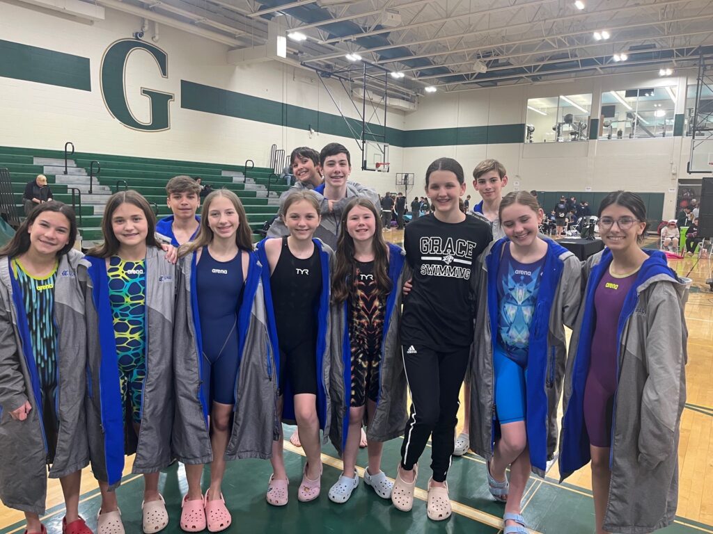 Grace Community swimmers competed against Coram Deo Academy, Dallas International School, Fort Worth Nolan Catholic Middle School, Granbury Middle School, Greenhill School, Prestonwood Christian Academy, Southwest Christian Middle School and Parish Episcopal Middle School.